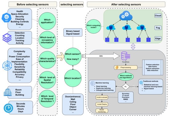 - Mena, A.R.; Ceballos, H.G.; Alvarado-Uribe, J. Measuring indoor occupancy through environmental sensors: A systematic review on sensor deployment. Sensors 2022, 22, 3770. [Google Scholar] [CrossRef] [PubMed]