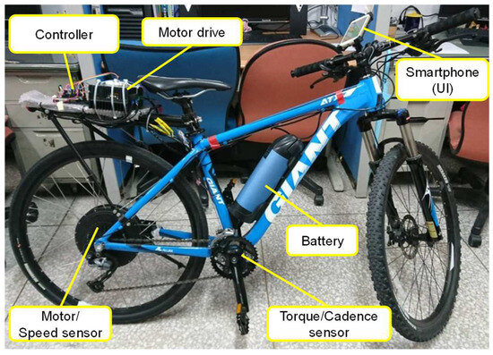 The safety and social and economic development of modern cities are highly dependent on transportation systems. Within the urban landscapes of major cities worldwide, bicycle-sharing systems have evolved into a vital element of the transportation options offered by smart cities. Through considering environmental conservation aspects, electric bikes (E-bikes) are convenient and efficient for short-distance transportation [1,2,3]. In general, there are two types of E-bikes, pure electric bicycles and power-assisted ones. In a pure electric bicycle, motor power can be generated by driving a hand throttle even when the rider is not pedaling. On the other hand, power-assisted bicycles are also named pedelecs [2], which means a pedal electric cycle. In order to activate the electric motor and receive assistance, the rider must pedal the bicycle.