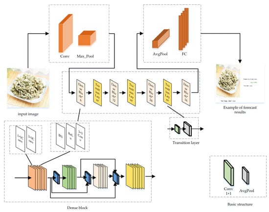 The improved dual-teacher supervised decay (DTSD) has two teacher models selected as the complicated and high-accuracy models ResNet50_vd and DenseNet121, respectively. The student model chosen for this paper was MobileNet_v3_Small, which is known for its lightweight design. The model’s structure is depicted in Figure 9.