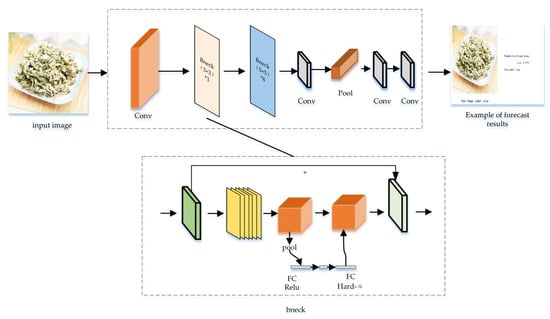 MobileNet_v3 represents the next evolutionary step: a lightweight network that amalgamates the essence of MobileNet_v1 and MobileNet_v2 while introducing enhancements. It was selected for its superior efficiency in processing speed and reduced parameter count, critical for deployment in resource-constrained environments. This iteration revolves around four core blocks: (1) a depthwise-separable convolution; (2) an inverted residual structure with linear bottleneck; (3) a lightweight attention block; (4) the utilization of h-swish as an activation function, replacing the conventional swish [15,16,17,18]. The architecture of MobileNet_v3, depicted in Figure 5, demonstrates these key components.