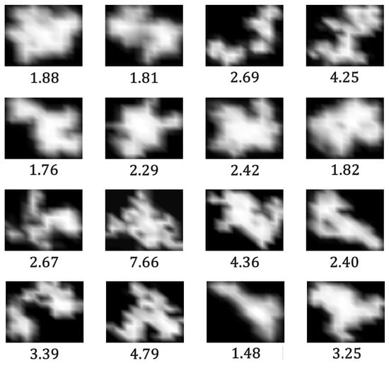 Images of particles obtained by 3DS disdrometer during snow events, classified as ‘snow’. The diameter (in mm) is provided at the bottom of each image.