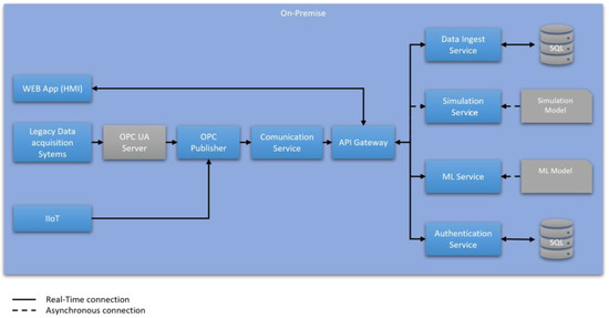 To enable communication between legacy systems such as SCADA and the API Gateway, this architecture proposes the use of OPC UA, as suggested by Hoffman et al. [27]. OPC UA is a unified communication standard for information modeling and real-time data exchange [28]. Using these protocols allows the development of Application Programming Interfaces (APIs) to access data from OPC UA sensors. These APIs, combined with the use of gateways, enable operational data to be brought to the network for use by the Digital Twin [20].