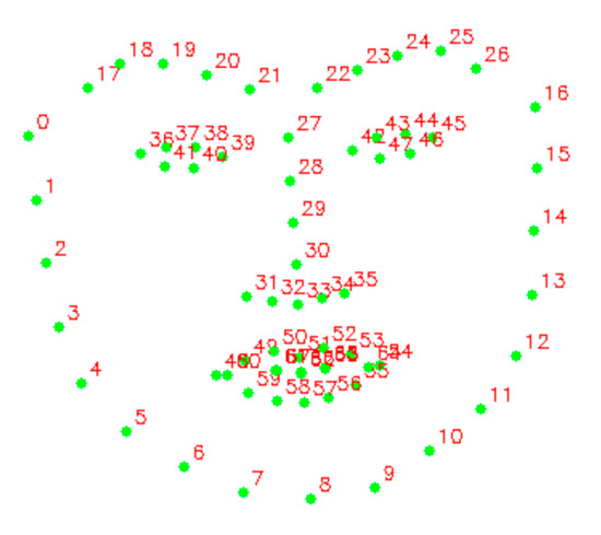 - Kazemi, V.; Sullivan, J. One millisecond face alignment with an ensemble of regression trees. In Proceedings of the 2014 IEEE Conference on Computer Vision and Pattern Recognition, Columbus, OH, USA, 23–28 June 2014. [Google Scholar]