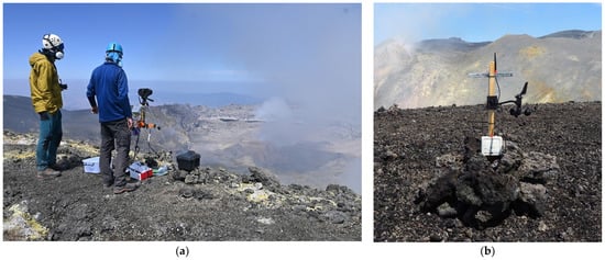 The Monte Frumento radon probe was moved in September 2020 to the rim of Bocca Nuova central crater, in an area of significant radon degassing, together with an anemometer [20]. A second radon probe was added to measure radon emissions from the ground on the same spot (Figure 2).