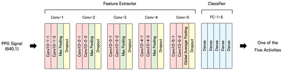 APA StyleRyu, S., Yun, S., Lee, S., & Jeong, I. c. (2024). Exploring the Possibility of Photoplethysmography-Based Human Activity Recognition Using Convolutional Neural Networks. Sensors, 24(5), 1610. https://doi.org/10.3390/s24051610