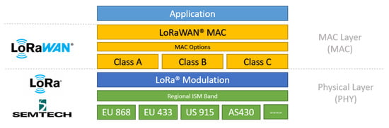 25]. Created by Semtech and promoted by the LoRa Alliance, LoRa is the physical layer that establishes the long-range communication link. LoRaWAN is the communication protocol based on the ALOHA [