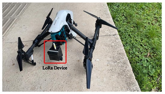 We utilized an end node consisting of an Arduino UNO board and a Dragino-developed shield plate, equipped with LoRa SX1276 and Quectel L80 GPS modules. The device was powered by a 5V USB and connected to a LoRa gateway, specifically the RAK7249 model. The end node was attached to a drone, running the LoRaWAN protocol as a transmitter.