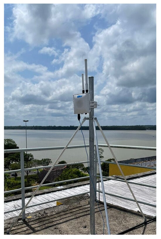 We conducted measurement campaigns on the shores of UFPA along the Guamá River. An LoRa gateway was placed on the roof of the Mirante do Rio building, 30 m above the ground. Simultaneously, an LoRa device was mounted on a drone, flying over the riverbanks along the edge of UFPA. We calculated the Euclidean distance between the transceivers using the latitude and longitude values captured by the GPS module in the drone’s LoRa device. The mobile end node stored the GPS position in motion to collect uplink channel information and transmitted it in the LoRa packet to the gateway (uplink).