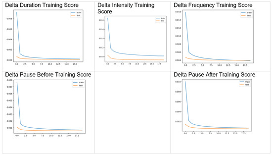 Initial experiments discovered a skew on the output voice predictions. The data values for frequency being used to train the LSTM included audio sources from both female and male voices, resulting in training an LSTM to create a target output that sounded like a deep-voiced woman, or a high-pitched man. A change in approach was enacted—to use the difference between frequency values (delta) as the target for the training; this change ultimately presented the desired behavior of the LSTM, as timing and frequency changes determine an authentic-sounding, melodic, prosodic voice. This approach was used for each value in each of the LSTM models created. In addition, Praat parameters were set to a specific upper and lower range—acting effectively as a band-pass filter—to ensure that the frequencies being captured for analysis were within the range of human spoken voice frequencies. The data preparation phase, therefore, had additional stages to ensure that the deltas are created as well as data cleansing.