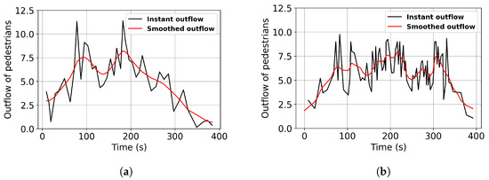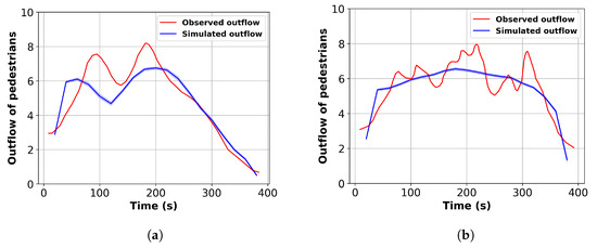Figure 11 presents a comparison of simulated outflow and observed outflow for the two exit roads. As illustrated, the simulated outflow exhibits close alignment with the observed outflow data.