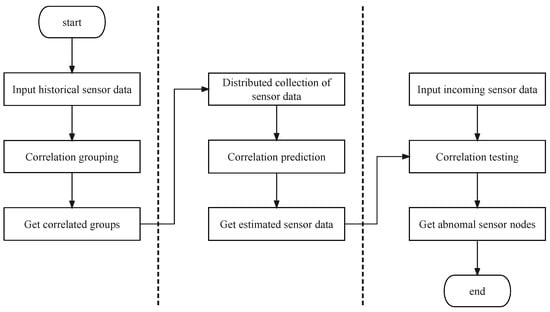 The flow diagram for FDIA detection in large-scale WSNs is shown in Figure 1. Next, let us discuss the three phases in detail.