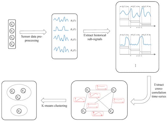 Finally, we pick C i j with a positive correlation for K-means clustering, which is one of the most widely used parameter selection methods. After K-means clustering, the sensors can be categorized into multiple correlation groups.