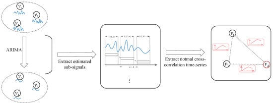 Consider pairwise sensors v i and v j in a group. As we discussed in the previous subsection, the measurements of v i and v j should be temporally correlated with their previous measurements. Therefore, this subsection uses the Autoregressive Integrated Moving Average (ARIMA) model to predict the future time-series signal of each sensor based on the HTS, which is referred to as the Estimated Time-series Signal (ETS). ARIMA is used as a time series predictive analysis method, which requires only historical data to make predictions and has the ability to be widely applied to a wide range of time series data.