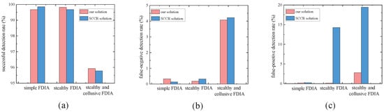 Figure 9. The comparison results of three metrics: (a) successful detection rate; (b) false-negative detection rate; (c) false-positive detection rate.