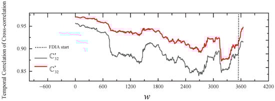Figure 11. The results of comparing the normal temporal correlation of cross-correlation with the actual temporal correlation of cross-correlation of v 3 within the group in a stealthy FDIA.