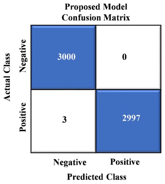 In Figure 5, we showcase the results of the confusion matrix analysis for our proposed model. The evaluation of the model on a dataset comprising 6000 images reveals a remarkable level of accuracy, with a mere three instances of misclassification. This impressive performance underscores the model’s ability to categorize most images in the dataset effectively. Notably, these rare misclassifications involve images erroneously labeled as “crack images”.