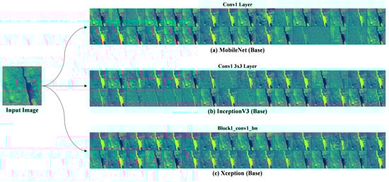 Our selected MobileNet, InceptionV3, and Xception are three distinct CNN architectures with varying approaches to feature map analysis in Figure 6. MobileNet prioritizes efficiency, InceptionV3 focuses on capturing diverse features at multiple scales, and Xception pushes the boundaries of depthwise separable convolutions for fine-grained feature extraction. Understanding the nuances of these feature map analyses can help researchers and practitioners choose the right architecture for their specific computer vision tasks.