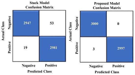 Confusion matrix visualization between stack and proposed model.