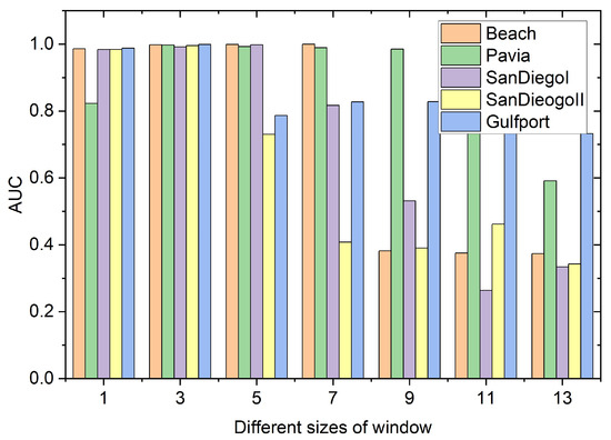 In this part, the running time of different detection schemes on all datasets is discussed. Table 4 presents the computational cost of all detection schemes. It is shown that the RX detector performs the fastest. The reason is that this method only requires a simple distance calculation; however, the RX method produces a relatively poor detection result. The computational burden of the RGAE scheme is the highest among all the studied techniques since the autoencoders require a plentiful amount of iterations during the training process. By contrast, the running time of the proposed SSIF is quite competitive among all the studied techniques. Furthermore, as the spatial size increases, the computational cost tends to increase. How to decrease the computing time is still an interesting topic.