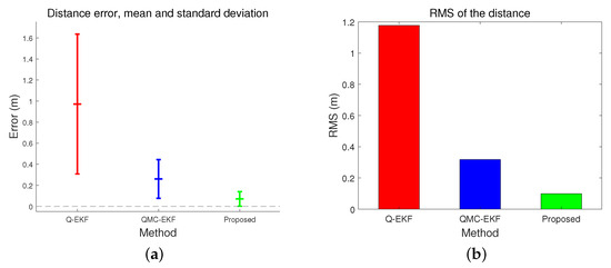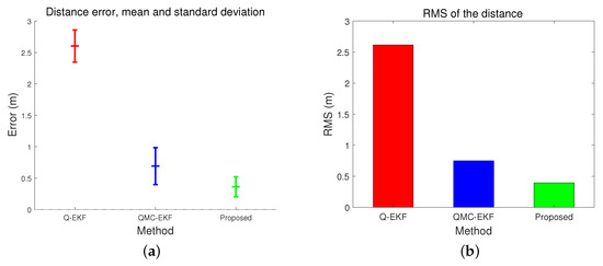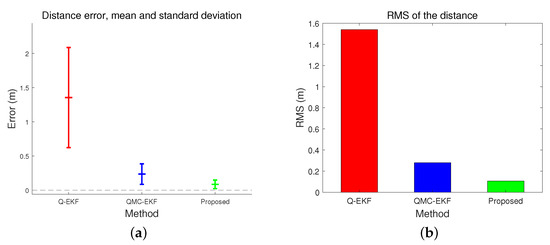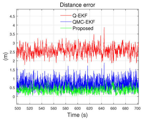 Figure 3. Here, the error of the estimated position is compared in terms of the distance error. The distance error refers to the distance between the estimated position
