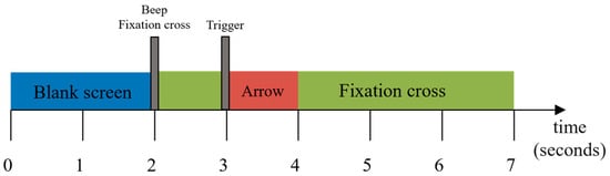 During the experimental sessions, the subjects sat in chairs with armrests and performed different MI tasks according to cues, and the order of cues was random. Each trial commenced with a period of silence lasting 2 s, then an acoustic stimulus and a cross on the screen indicated the start of the trial. From 3 s to 7 s, the subjects were asked to performed the indicated mental task. The timeline is shown in Figure 2.