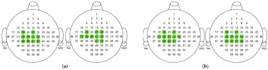 Spatial filtering and channel selection are commonly utilized in order to enhance the performance of MI-BCI. The common spatial pattern (CSP) algorithm and its related algorithms [4,5,6,7] serve to enhance the discernibility of MI-BCI mental states by maximizing the variance of one class while minimizing the variance of the other class. Jin et al. proposed a channel selection method based on brain network parameters using the Pearson coefficient to quantify the statistical relationship and select the optimal channels [5]. Zhang et al. incorporated an auto channel selection layer into the neural network, allocating weights based on the EEG channels’ contributions to MI signal classification, thereby facilitating adaptive channel selection [8].