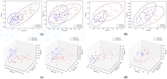 In order to compare the differences in the distributions of features with and without SSA, Figure 11 illustrates the feature distributions of subjects K3B and L1B in DS1. The feature distributions after optimization with SSA became more discriminative, which provides a basis for explaining the improvement in accuracy at the feature distribution level.