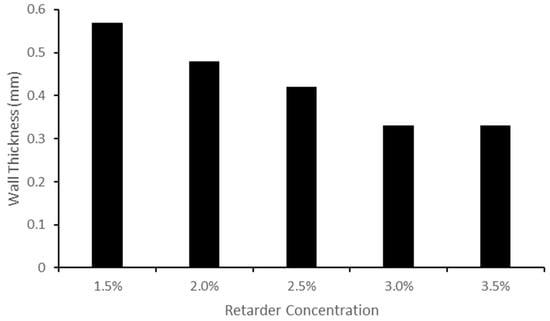 Bar chart displaying the change in wall thickness measurements for varying retarder concentrations.