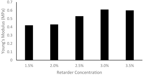 Bar chart displaying the Young’s modulus measurements for varying levels of retarder concentrations.