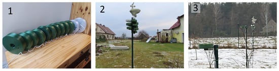 The network for measuring particulate matter consisted of 12 devices, which included the laser scattering Plantower PMS7003 suspended PM sensor (Figure 3). The working principle and sensor properties of the nearly identical PMS5003 sensor are described elsewhere []. The manufacturer recommends using it for indoor measurements at temperatures ranging from −10 °C to +60 °C and relative humidity from 0 to 99%. PM sensors are sensitive to smoke, which strongly contaminates the measuring chamber of optical sensors. Therefore, they should be located away from smoke sources.