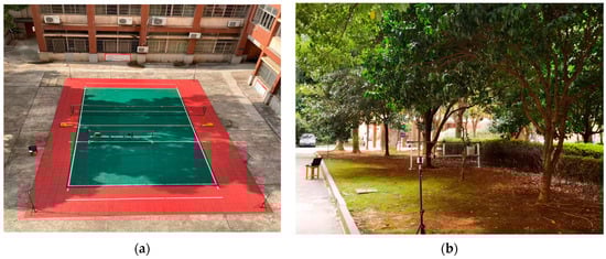 We conducted positioning experiments in both obstacle-free and obstacle-rich environments. The obstacle-free environment was a volleyball court outside the teaching building, while the obstacle-rich environment was a forest next to the laboratory building. In the obstacle-rich environment, tree branches and trunks served as obstacles during the positioning process, while the small field had no obstacles. The experiments were conducted around 14:00 when the lighting conditions were good, facilitating the experiment.