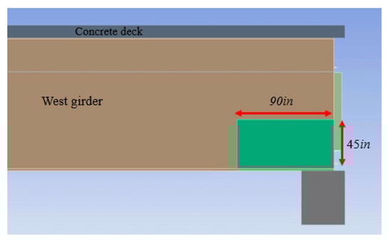 Clairton Bridge modeling. The added rectangular plate to the location of the fifth damage scenario.