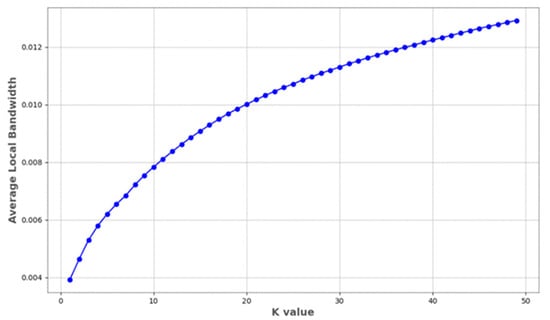 In this study, the local bandwidth plays a crucial role in noise removal, but it is controlled by the number of neighboring points and dynamically adjusted with changes in the points. To gain a comprehensive understanding of how variations in the number of neighborhood points affect local bandwidth, an analysis was conducted on the overall impact of the neighborhood point count on the average local bandwidth from a holistic point cloud perspective. The experimental results are illustrated in Figure 6.