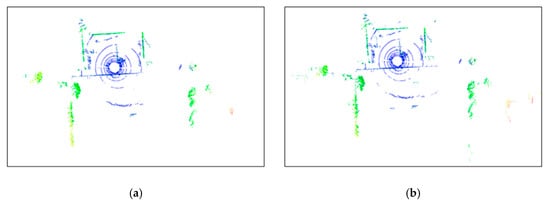 Performance of the SOR filter with different standard deviation ratio (plan view). (a) SDratio = 1, (b) SDratio = 2.