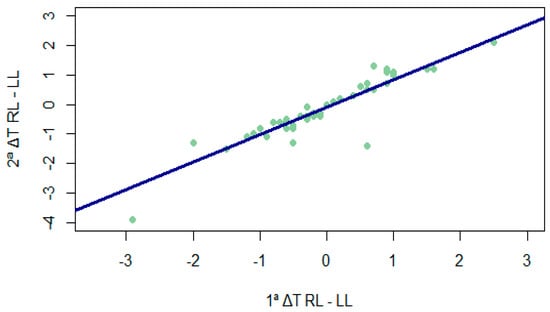3.1.3. Temperature Differences between Times for Each Leg