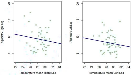 - Sempere-Rubio, N.; Aguilar-Rodríguez, M.; Inglés, M.; Izquierdo-Alventosa, R.; Serra-Añó, P. Thermal Imaging Ruled out as a Supplementary Assessment in Patients with Fibromyalgia: A Cross-Sectional Study. PLoS ONE 2021, 16, e0253281. [Google Scholar] [CrossRef]