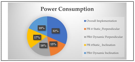 Figure 9 presents a quantitative comparison of device utilization with respect to the general flow versus PR flow. Xilinx-based ILA was used as a monitoring tool for evaluating devices that utilize individuals while executing the PR flow. The LUTs, BRAM, and DSP slices are addressed for the following modules of backing crash prevention with respect to static at perpendicular as 40%, 46%, and 46%; static at inclination as 43%, 47%, and 47%; dynamic at perpendicular as 46%, 51%, and 47%; dynamic inclination as 48%, 53%, and 48%, respectively. Similarly, the static power consumption of the above modules, monitored with the Xilinx power estimator (XPE) illustrated in Figure 10, is 1.18 watts, 1.26 watts, 1.34 watts, and 1.4 watts.