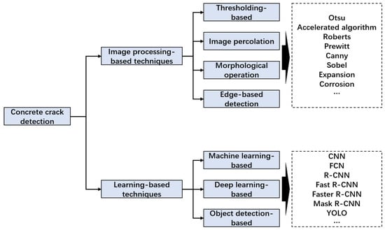 - Gupta, P.; Dixit, M. Image-based crack detection approaches: A comprehensive survey. Multimed. Tools Appl. 2022, 81, 40181–40229. [Google Scholar] [CrossRef]