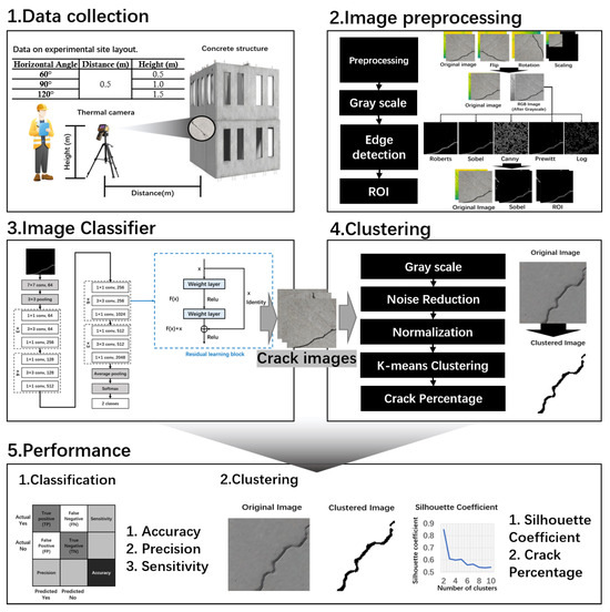 Choi, Y.; Park, H.W.; Mi, Y.; Song, S. Crack Detection and Analysis of Concrete Structures Based on Neural Network and Clustering. Sensors 2024, 24, 1725. https://doi.org/10.3390/s24061725