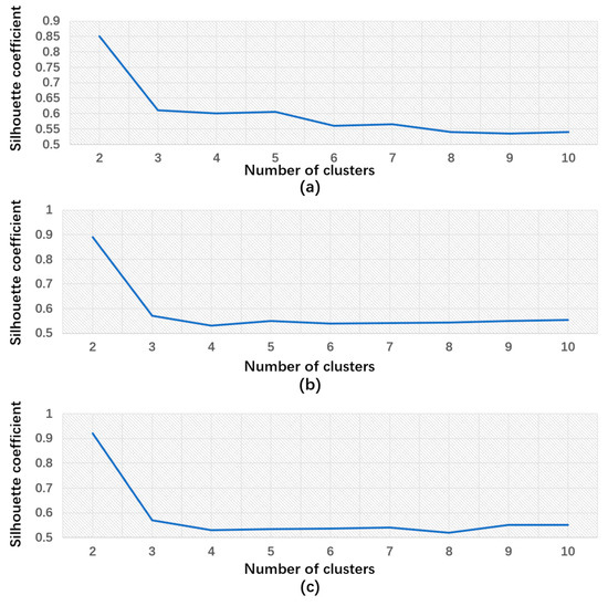 - Rousseeuw, P.J. Silhouettes: A graphical aid to the interpretation and validation of cluster analysis. J. Comput. Appl. Math. 1987, 20, 53–65. [Google Scholar] [CrossRef]