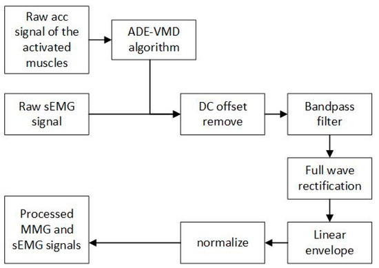 MMG and sEMG signals are time series data; consequently, the preprocessing of both was required prior to the estimation of joint movement. The processing pipeline was as follows: