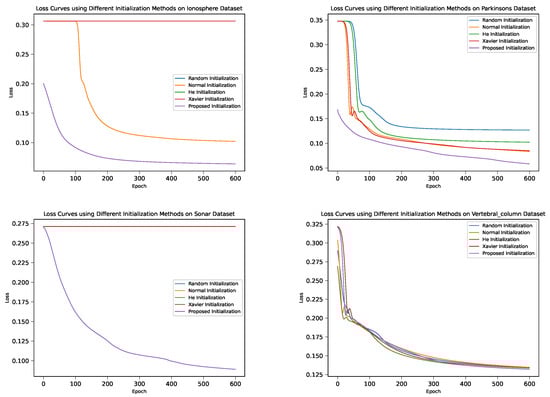 - From the loss curves, it is evident that our proposed initialization method converges faster than its peers. This indicates that our method not only helps us address the gradient vanishing problem but also facilitates rapid training of DNMs, allowing for efficient model optimization and potentially reducing the overall training time.