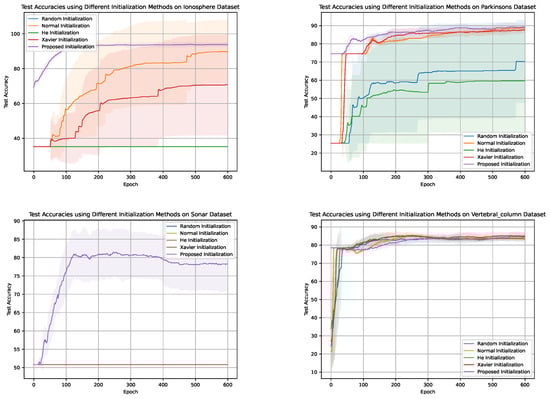 In summary, the extended analysis of the experimental results reinforces the value of our proposed initialization method in addressing a gradient vanishing problem, accelerating a convergence process, and enhancing the overall performance of DNMs across various datasets. The versatility and robustness of our method make it a valuable addition to the repertoire of weight initialization techniques for deep neural networks.