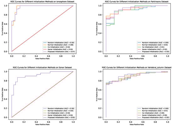 - For datasets with a larger number of features, such as the Sonar and Ionosphere datasets, the proposed initialization method exhibits superior performance to its peers. This is particularly evident in the Sonar dataset, where our method is the only initialization method that makes the model converge successfully. The results suggest that our method is well-suited for handling high-dimensional datasets and can overcome the challenges posed by complex feature space.