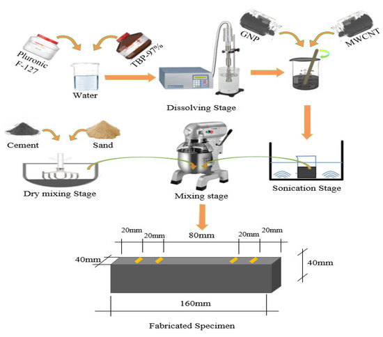 - Al-Dahawi, A.; Öztürk, O.; Emami, F.; Yildirim, G.; Şahmaran, M. Effect of Mixing Methods on the Electrical Properties of Cementitious Composites Incorporating Different Carbon-Based Materials. Constr. Build. Mater. 2016, 104, 160–168. [Google Scholar] [CrossRef]