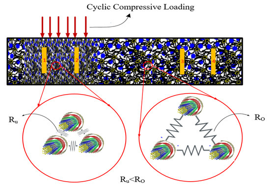 - Dong, W.; Li, W.; Shen, L.; Sun, Z.; Sheng, D. Piezoresistivity of Smart Carbon Nanotubes (CNTs) Reinforced Cementitious Composite under Integrated Cyclic Compression and Impact. Compos. Struct. 2020, 241, 112106. [Google Scholar] [CrossRef]