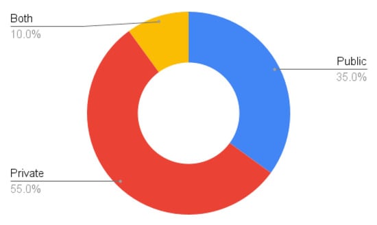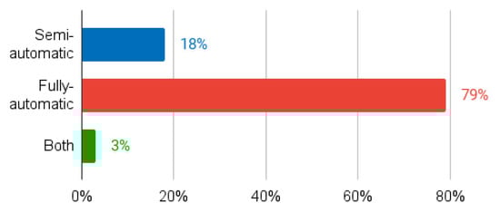 Percentage of studies according to their level of automation (semi-automatic, fully automatic, or both).