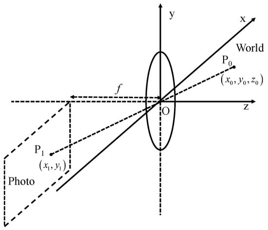 where f is the focal length of the camera; the transformation relationship between the actual scene and the optical image can be obtained: