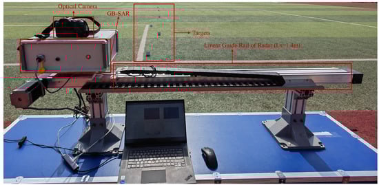 Firstly, the fitting parameters of Formula (13) were solved by practical experiments. In order to obtain the detection range of the targets, the experimental system includes an X-band GB-SAR system and an optical camera, as shown in Figure 6.