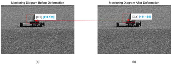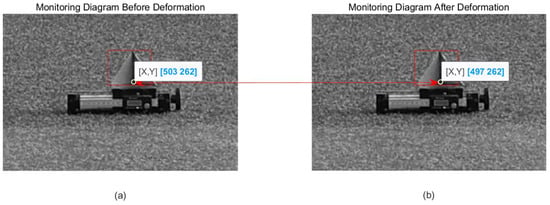 Optical deformation monitoring result: (a) before deformation; (b) after deformation.